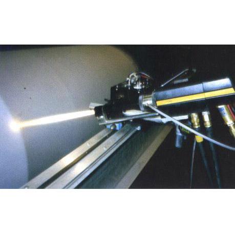 超音速火焰喷涂是1981年美国的Browing发明了发明的一种新型热喷涂技术。超音速火焰喷涂(HVOF)设备的核心为喷枪,喷枪由燃烧室(使喷涂材料粒子得到充分加热加速)、Laval喷嘴(将焰流加速到超音速)和等截面长喷管(使喷涂材料粒子得到充分加热加速)三部分组成。其工作原理如下:由小孔进入燃烧室的液体燃烧,如煤油,经雾化与氧气混合后点燃,发生强烈的气相反应,燃烧放出的热能使产物剧烈膨胀,此膨胀气体流经Laval喷嘴时受喷嘴的约束形成超音速高温焰流。此焰流加热加速喷涂材料至基体表面,形成高质量涂层。